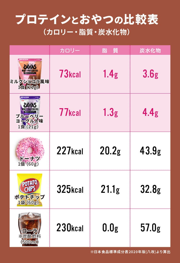 | 乳清たんぱく(アメリカ製造、ニュージーランド製造)、ココアパウダー、難消化性デキストリン、植物油脂、食塩/炭酸Ca、乳化剤、炭酸Mg、甘味料(アスパルテーム・L-フェニルアラニン化合物、スクラロース)、増粘剤(プルラン)、V.C、香料、ピロリン酸第二鉄、V.E、V.B2、V.B6、パントテン酸Ca、V.B1、ナイアシン、V.A、V.D、V.B12、(一部に乳成分・大豆を含む) |