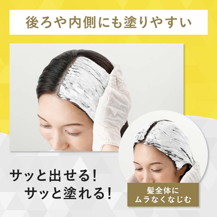 その他の成分:HEDTA・3Na2水塩、LPG、PEG-30ラノリン、POEセチルエーテル、POE(21)ラウリルエーテル、アスコルビン酸、海藻エキス-1、強アンモニア水、グリコール酸、水溶性コラーゲン液-3、ステアルトリモニウムクロリド、セタノール、タウリン、ツバキ油、テアニン、尿素、ヒマワリ油-1、ミリスチルアルコール、無水亜硫酸Na、モノエタノールアミン、ルチン、香料