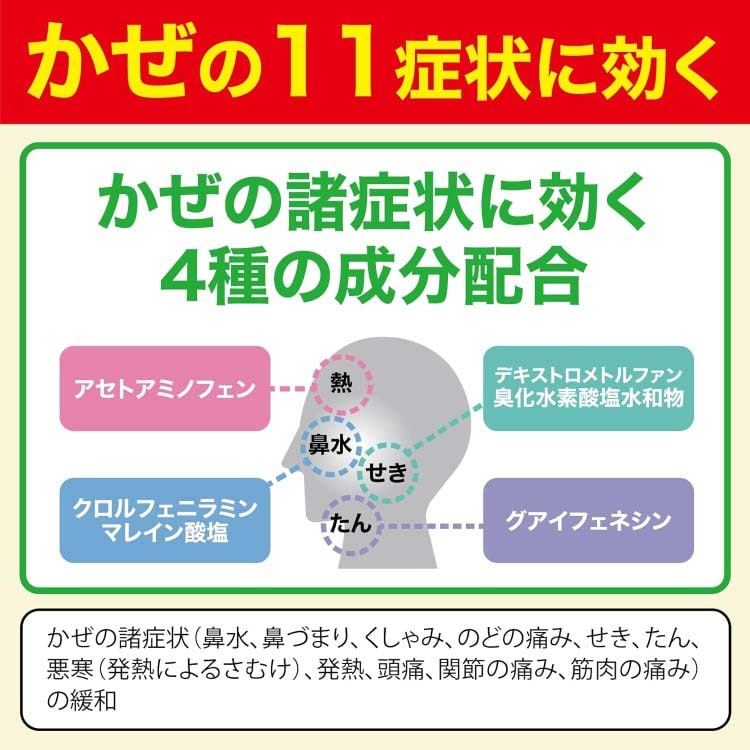 ●かぜの11の諸症状によく効く、家族向けの総合かぜ薬です。