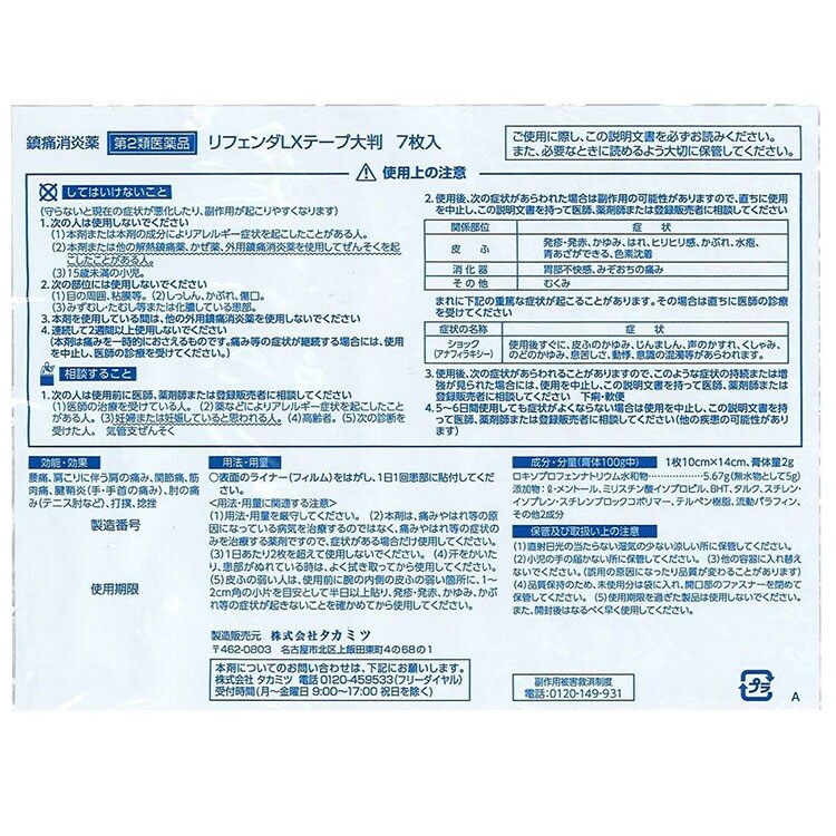 【第2類医薬品】リフェンダLXテープ大判 (7枚入*2袋セット(セルフメディケーション税制対象))