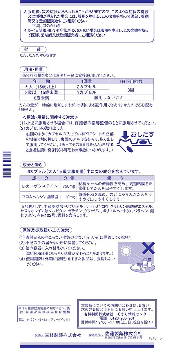 ●医療現場で繁用されているL-カルボシステインおよびブロムヘキシン塩酸塩の2つの去たん成分を配合しています。