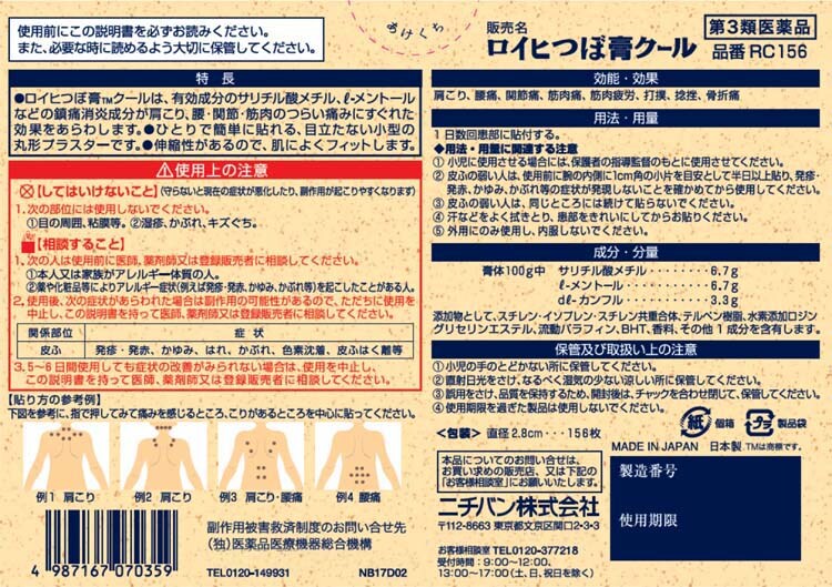 【第3類医薬品】ロイヒつぼ膏 クール (156枚入*3箱セット(セルフメディケーション税制対象))