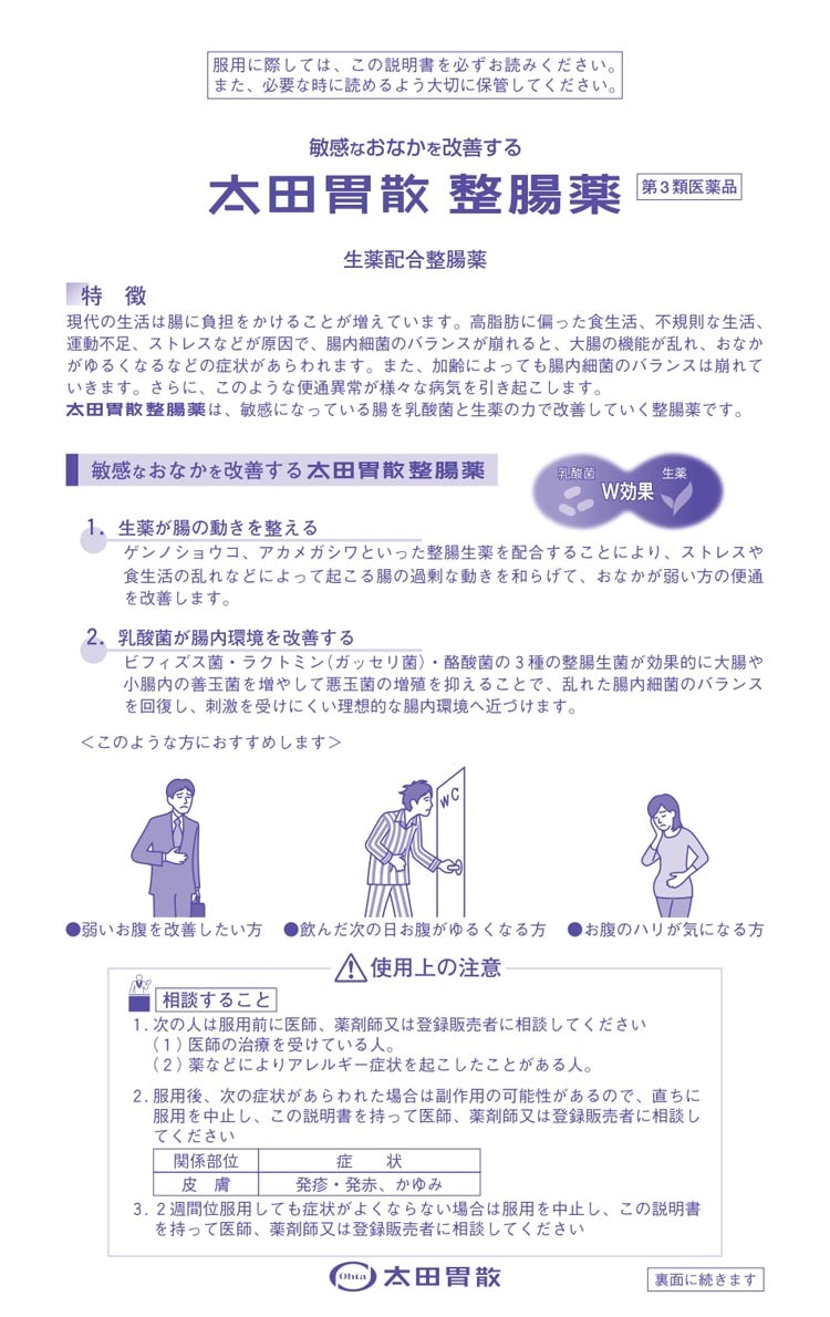 太田胃散整腸薬は、敏感になっている腸を乳酸菌と生薬の力で改善していく整腸薬です。