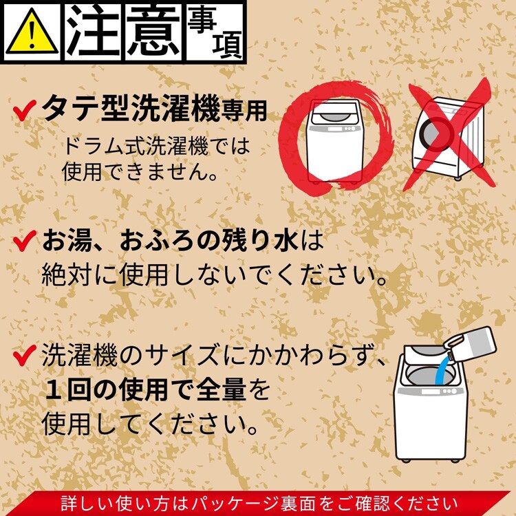 ※洗濯機のサイズにかかわらず、1回の使用で全量(1.8kg)を全て使用してください。