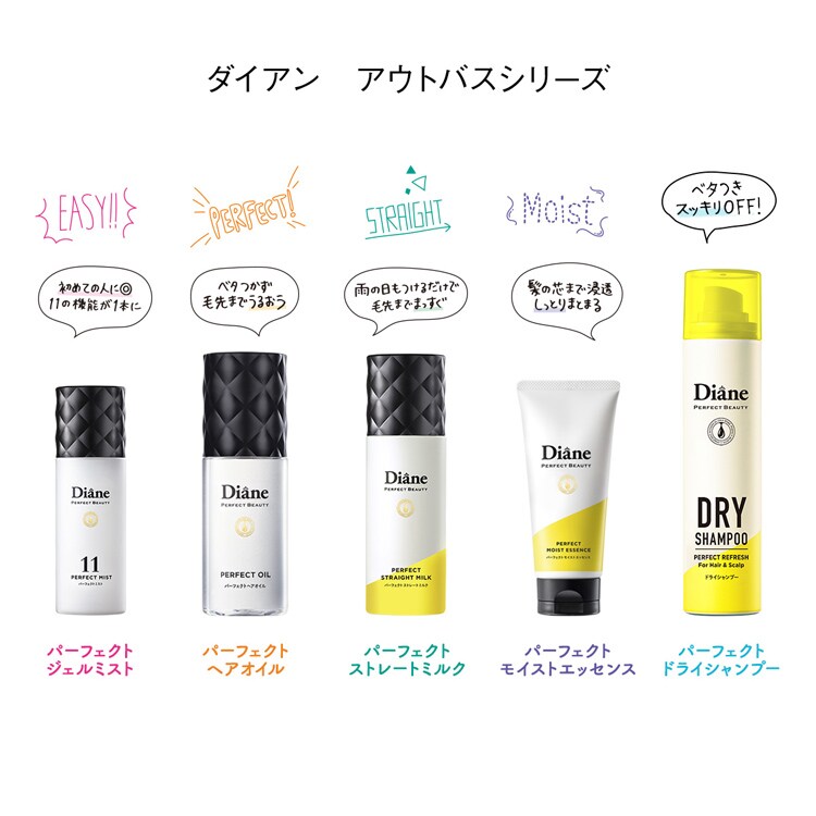 ●1本で11役:ダメージ補修/ツヤUP/保湿/カラーケア/ヒートプロテクト/ヘアフレグランス/広がり・うねりを防ぐ/枝毛・切れ毛を防ぐ/静電気防止/キューティクルケア/紫外線ダメージケア(乾燥による)