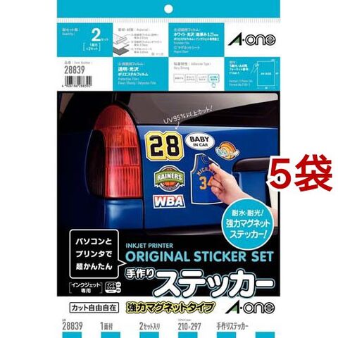 エーワン 手作り ステッカー 自作 インクジェット 強力マグネット A4 28839 (2シート×5セット)