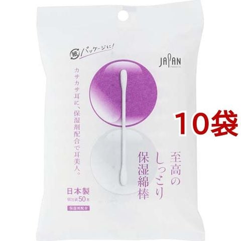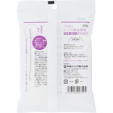 | 両側:保湿剤配合綿球 1本パック個包装、10本*5シート 綿棒サイズ(mm):(全長)80*(綿球径)5*(軸径)2.5 |