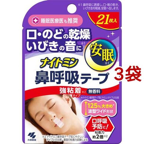 ナイトミン 鼻呼吸テープ 強粘着タイプ 無香料 (21枚入*3袋セット)