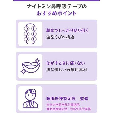 【ナイトミン 鼻呼吸テープ 強粘着タイプ 無香料の商品詳細】
