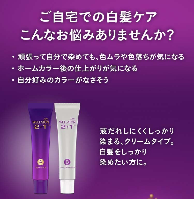 ●リッチなカラーと美しいツヤで大人の女性の魅力を引き出すヘアカラー「ウエラトーン 2+1シリーズ」のクリームタイプ。