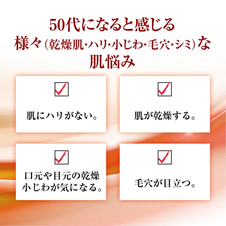 ●年齢に応じたスキンケアを考えて、50種類の養潤成分(うるおい成分)をぎゅっとつめこみました。
