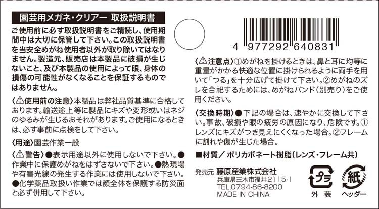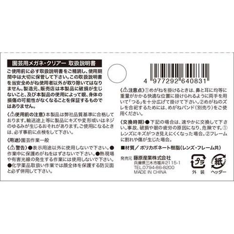 【藤原産業 セフティー3 園芸用作業メガネ クリアー SGG-8の商品詳細】