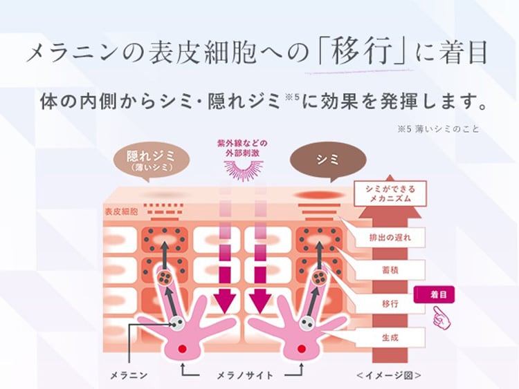 ・肌の奥で増す過剰なメラニンの生成を抑制します。