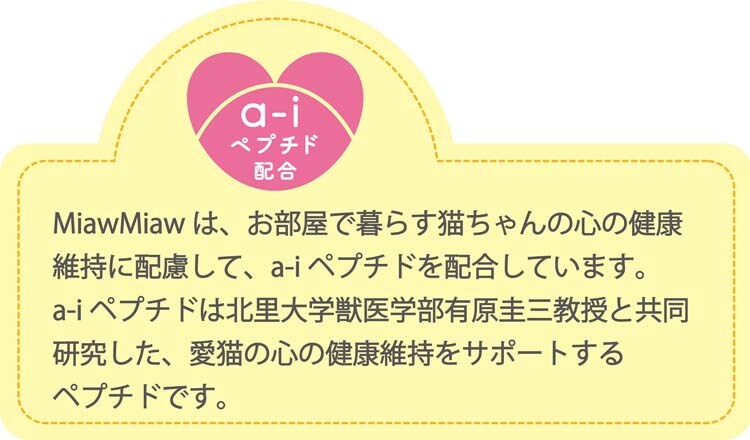 ●お部屋で暮らす愛猫の心の健康維持に配慮して「a-iペプチド」を配合。