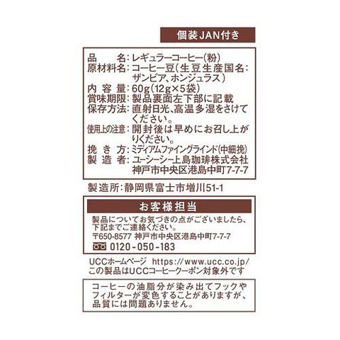 ●さわやかな酸味とクリーミーな口当たりをお楽しみいただけるワンドリップコーヒー5杯入です。新鮮な個包装タイプ。1杯あたり12gと贅沢仕様。