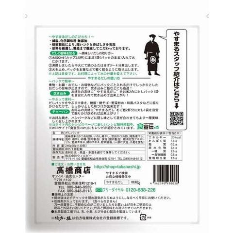 煮物・お鍋・おでん・お吸物などにパックごと入れるだけでしっかりとしたおだしの旨味が出ますので、炊き込みご飯などにもぴったり!