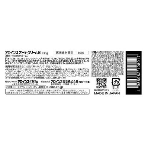 | 有効成分:ステアリン酸グリチルレチニル その他の成分:精製水、濃グリセリン、流動パラフィン、ミリスチン酸イソプロピル、ソルビット液、セタノール、親油型ステアリン酸グリセリル、POEセチルエーテル、セレシン、アロエエキス(2)、ステアリン酸ソルビタン、ステアリン酸、ジメチコン、ステアリン酸アミド、PVP、セチル硫酸Na、POEラウリルエーテル、トコフェロール、BG、パラオキシ安息香酸メチル、パラオキシ安息香酸プロピル、香料、黄4、青1 |