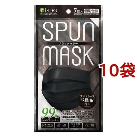 スパンレース不織布カラーマスク ブラック (7枚入*10袋セット)