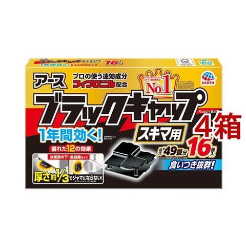 ブラックキャップ スキマ用 ゴキブリ 駆除剤 置き型 殺虫剤 毒餌剤 退治 対策 (16個入*4箱セット)