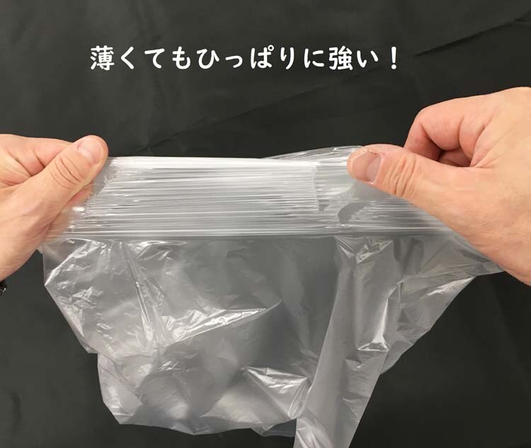 ●縦の引っ張り強度に優れ、厚みを薄くしても強度のあるゴミ袋(ポリ袋)です。