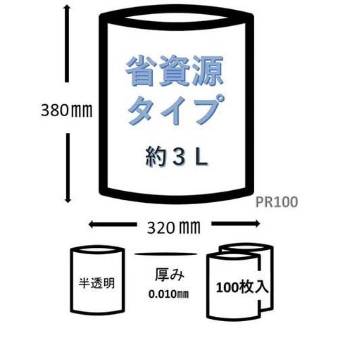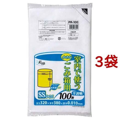 ジャパックス 室内で使う 小さなごみ箱用 ポリ袋 SS 約3L 半透明 PR100 厚み:0.010mm (100枚入*3袋セット)