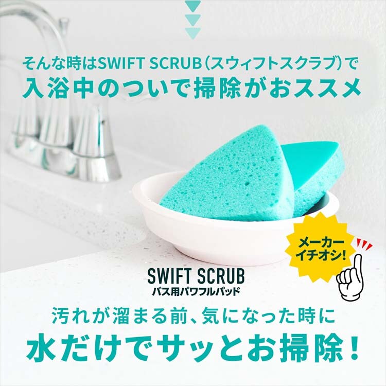 ●スコッチ・ブライト バスシャイン SWIFT SCRUB バス用パワフルパッドは、洗剤だけでは落としきれない石鹸カスや水垢汚れを、簡単に、洗剤不要の水だけでスッキリ落とすお掃除パッドです。