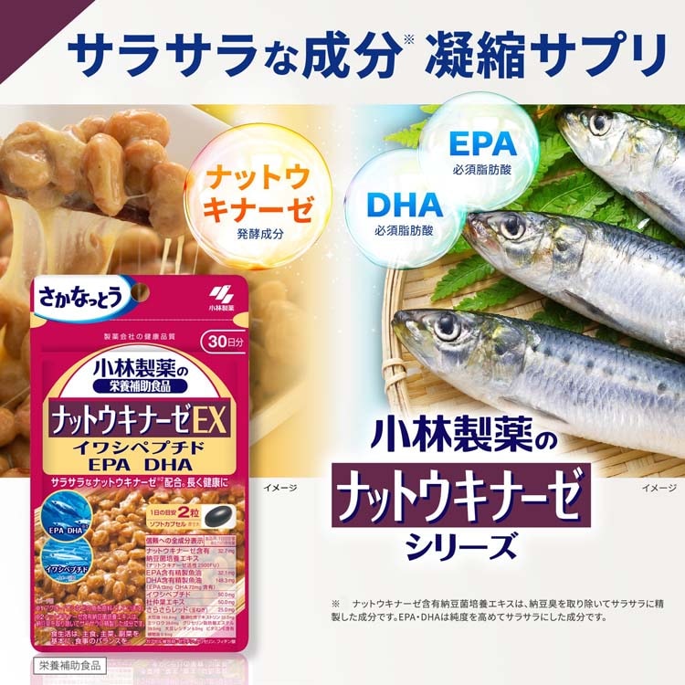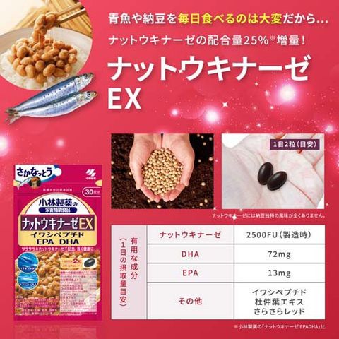 ●小林製薬のナットウキナーゼ EX サプリメントは、中高年の健康維持に役立つナットウキナーゼサプリ。