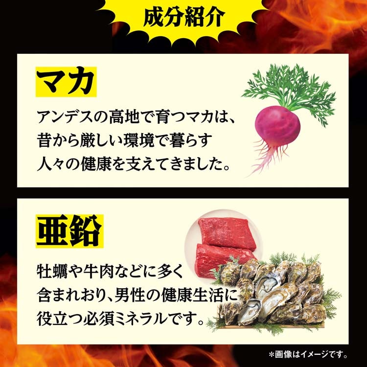 ●男性の健康生活に必要な必須ミネラルである「亜鉛」とアンデスで暮らす人々の健康を支えてきた「マカ」を配合。