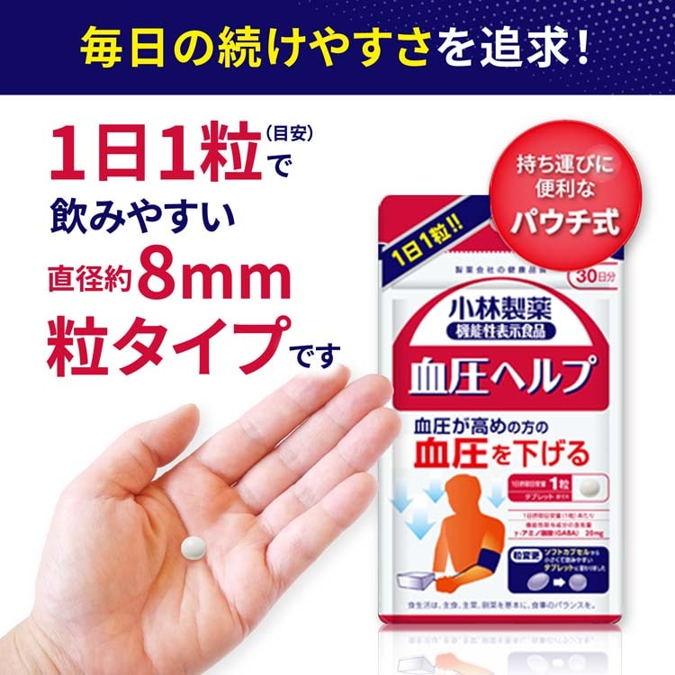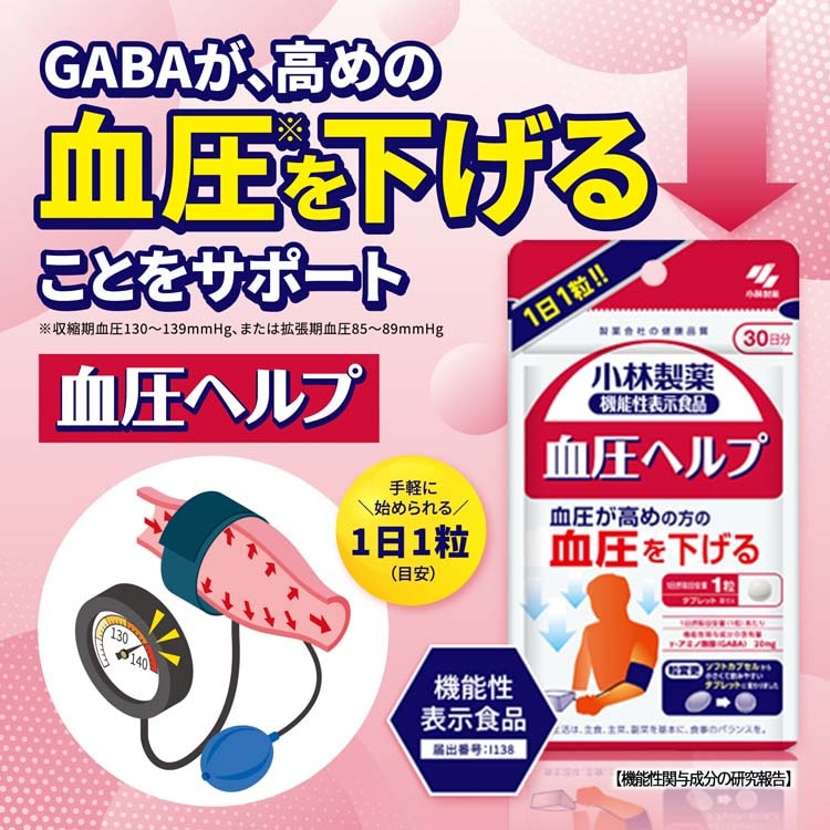 ●小林製薬「血圧ヘルプ」にはギャバ(GABA)が含まれ、毎日続けやすいサプリです。