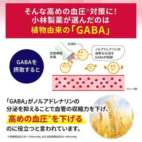 ●小林製薬「血圧ヘルプ」にはギャバ(GABA)が含まれ、毎日続けやすいサプリです。