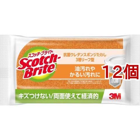 3M スコッチブライト 抗菌 ウレタン キッチン スポンジたわしリーフ型3層 (12個セット)