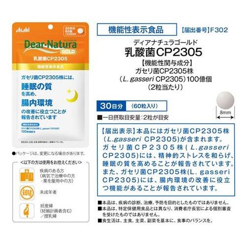 ガゼリ菌CP2305株(L.gasseri CP2305)には、精神的ストレスを和らげ、睡眠の質を高めることが報告されています。また、ガゼリ菌CP2305株(L.gasseri CP2305)には、腸内環境の改善に役立つ機能があることが報告されています。