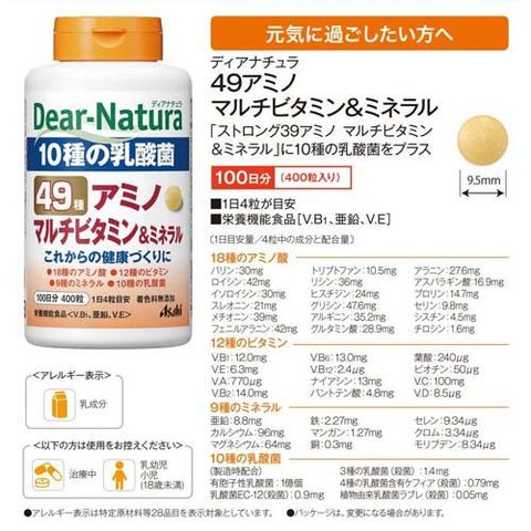 ●49種の成分(18種のアミノ酸、12種のビタミン、9種のミネラル、10種の乳酸菌)