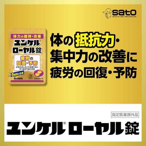 ●ローヤルゼリー、ニンジン、オキソアミヂン末などの5種類の生薬に各種ビタミンを配合し、疲労の回復や二日酔いに伴うだるさなどに効果をあらわします。