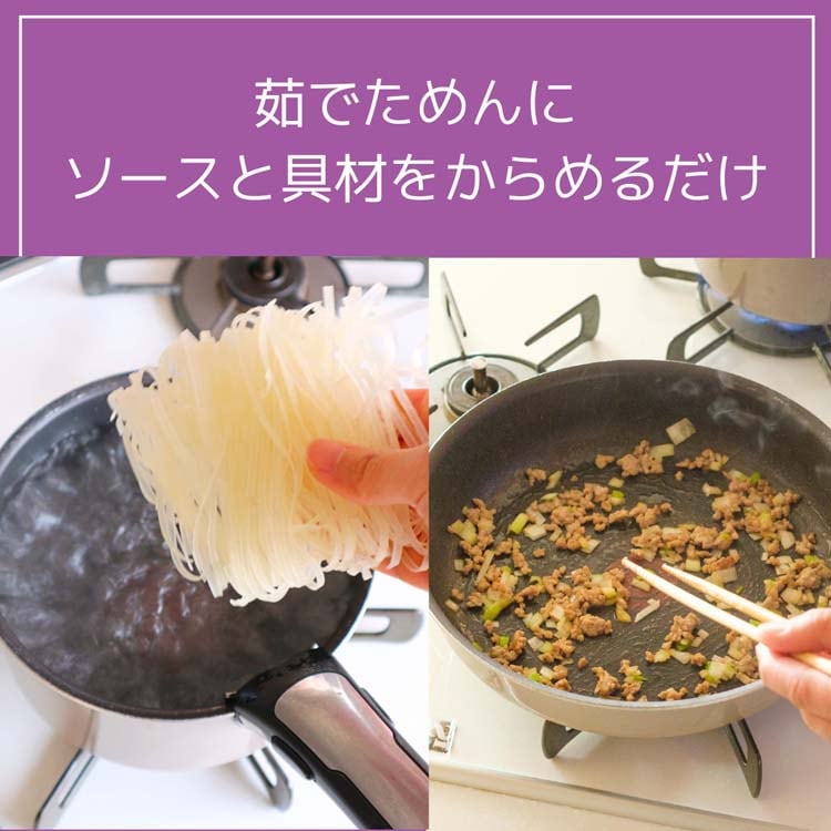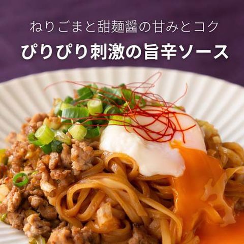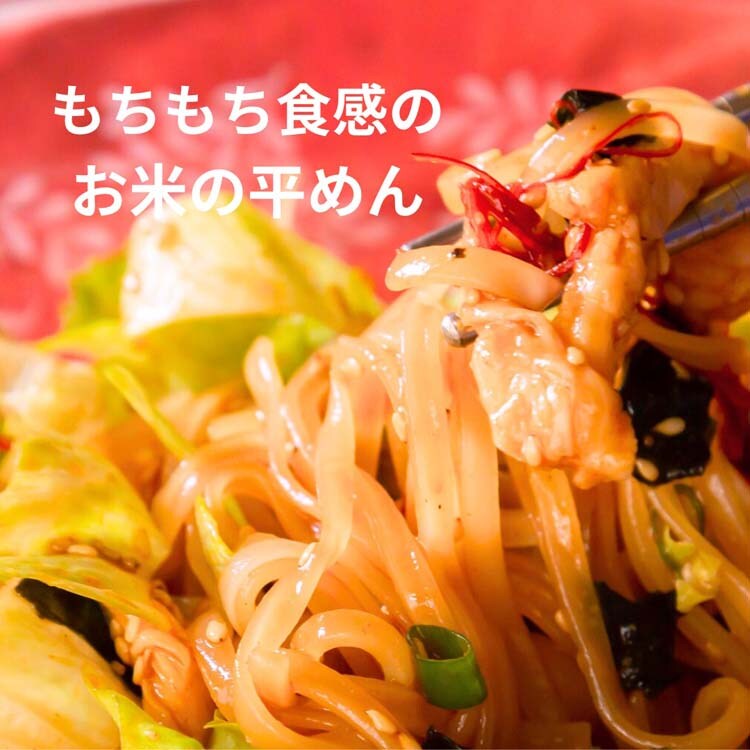 ●もちもちした食感のお米の平めんに、ぴりぴり刺激の旨辛ソース。