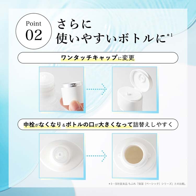 ●みずみずしいさっぱりタイプ:肌にしっかりうるおいを与えて乾燥を防ぎ、すっきりみずみずしいうるおい肌に導く化粧水です。