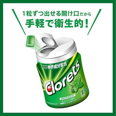 *1: 2022年当社調べ。「オリジナルミント」については調査対象の83%が製品を30分間噛んだ時点において「息がスッキリ感じる」と回答。調査人数:100名。調査対象者:3か月以内に、ミント味ガムを自購入消費した18-59歳の男女(「クロレッツガムは購入したくない」人は除外)