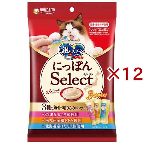 銀のスプーン おやつ にっぽんSelect とろリッチ 3種 まぐろ節&鶏ささみ&ほたて (18本入×12セット(1本6g))