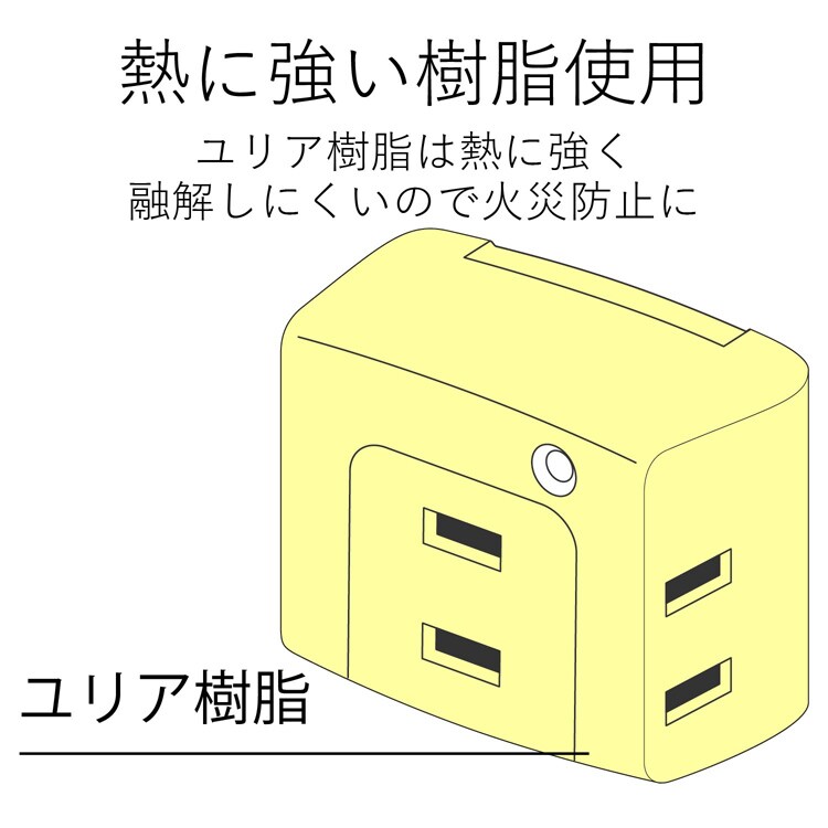 ●耐熱性に優れたユリア樹脂を使用していますので、万一の発熱の際にも融解しにくく、電気火災の防止に有効です。