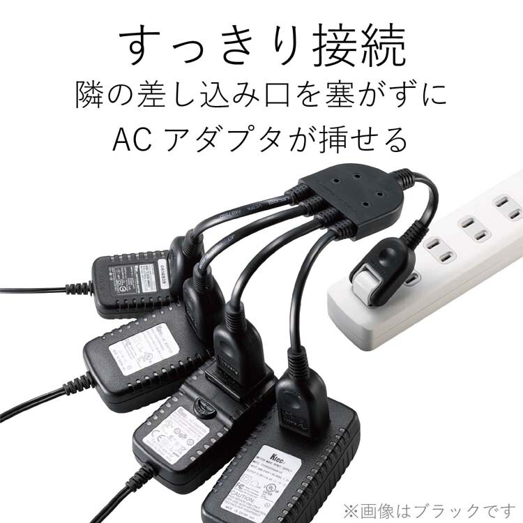 ●幅の広いACアダプタの接続に最適!隣のコンセント差込口をふさがずにACアダプタを接続できる電源延長コード