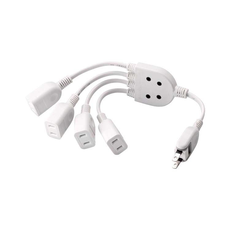 ●ACアダプタを4個接続できる4個口タイプです。 プラグ部には抜き差ししやすいくぼみを設けています。