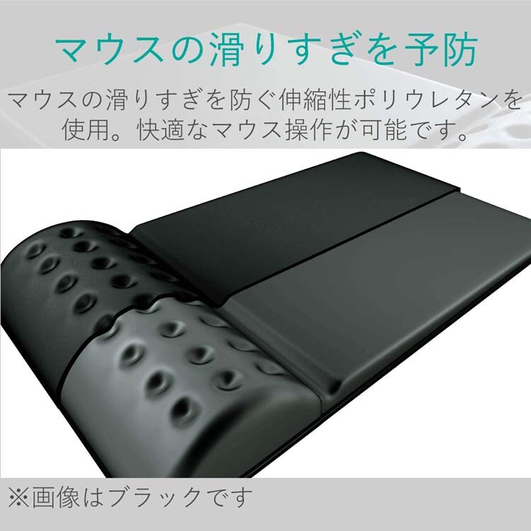 低反発ポリウレタンを採用したリストレスト一体型マウスパッドです。リストレスト部は、反発弾性が非常に小さく、優れた衝撃吸収性能を持っています。圧力に対して復元速度が遅いため、優れた荷重分散性能を有しており、手首の形状にフィットし長時間のPC作業をサポートします。また、凹凸加工により心地よい感触と通気性を向上。より快適な使用感を実現しました。ソフトな操作面は、マウスが滑りすぎず静かな操作感が得られます。裏面は、デスクにピッタリと吸着してズレや移動を防ぎます。