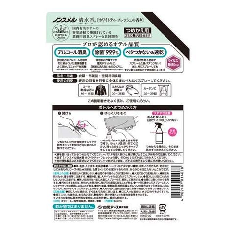 ・必ず「ノンスメル清水香 ホワイトティーフレッシュの香り 400ml」のボトルにつめかえてください。