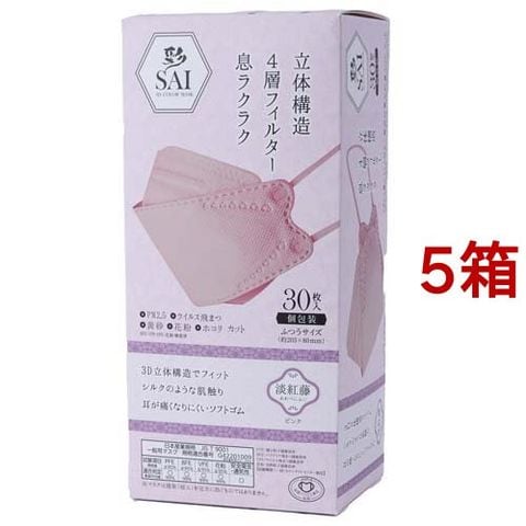 彩 SAI 3D COLOR MASK ピンク ふつうサイズ (30枚入*5箱セット)