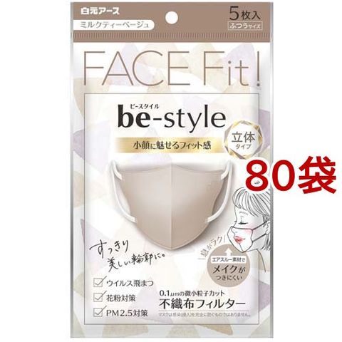 ビースタイル 立体タイプ ミルクティーベージュ ふつうサイズ (5枚入*80袋セット)