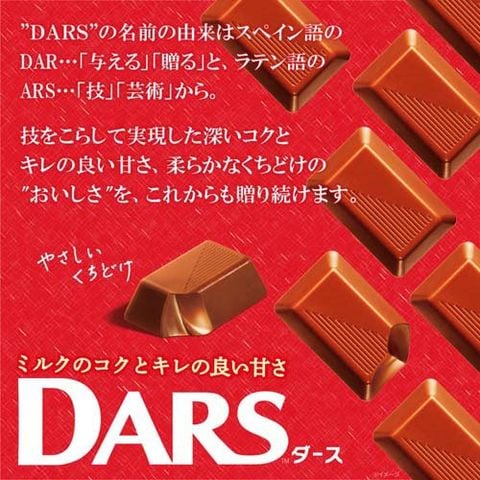 ●ダースはミルク感にこだわったチョコレート。濃厚なミルクの味わいが引き立つように生クリームの使用量UP。ひと粒のサイズも10%UP(メーカー従来品比)。