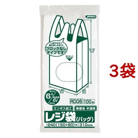 ジャパックス レジ袋 エンボス加工 半透明 RD06 (東06号・西20号) 厚み:0.011mm (100枚入*3袋セット)