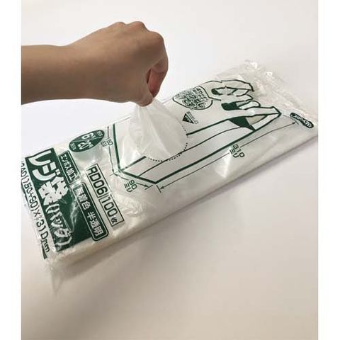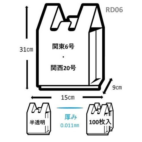 ●東日本(関東)06号サイズ、西日本(関西)20号サイズのレジ袋(手付きポリ袋)です。