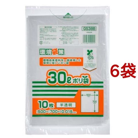 ジャパックス バイオマス ゴミ袋 30L 半透明 GS38B 厚み:0.015mm (10枚入*6袋セット)