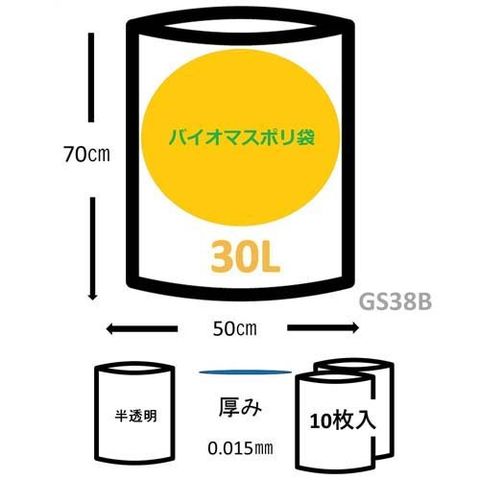 【ジャパックス バイオマス ゴミ袋 30L 半透明 GS38B 厚み:0.015mmの商品詳細】